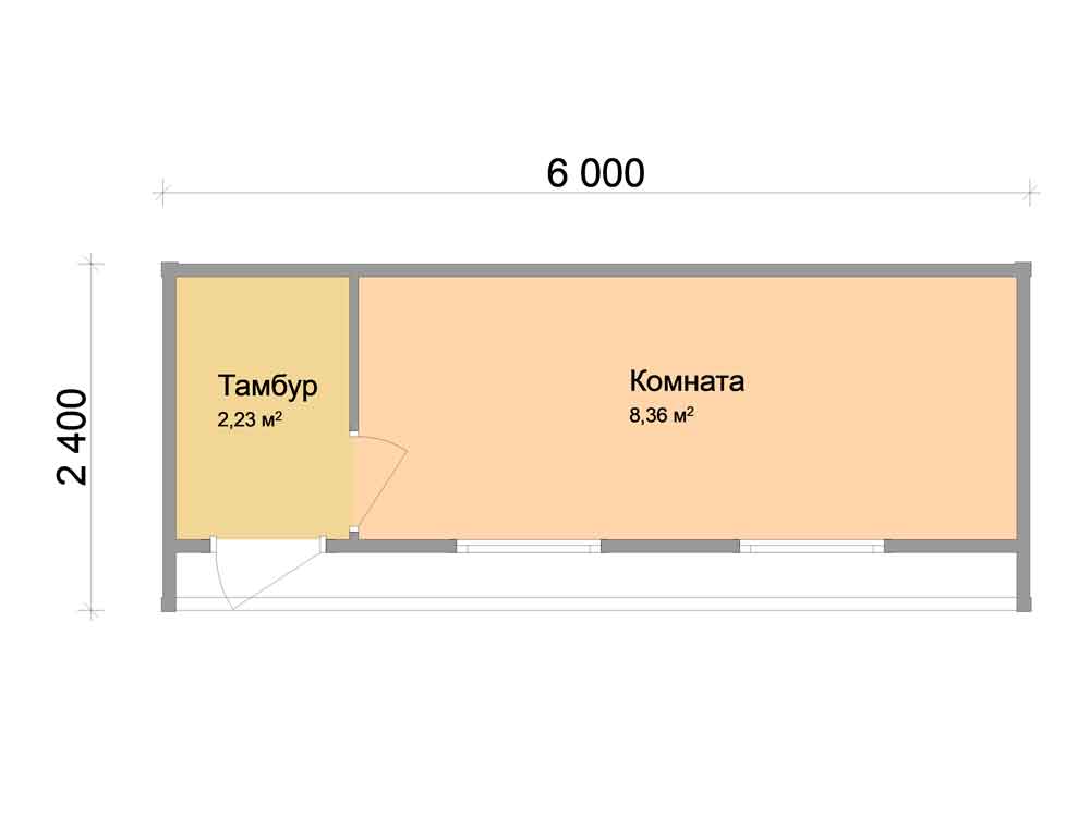 Бытовка для дачи в стиле хай-тек 6х2.4 распашонка6х2,414,4ДВП-Оргалит:
